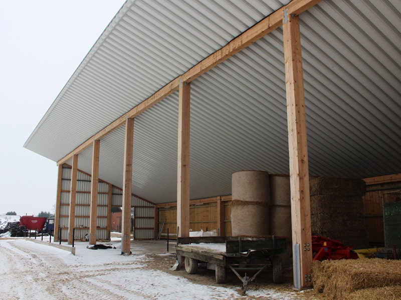 Je nachdem, ob Sie Strohballen oder Futter, Maschinen oder unempfindliche Verbrauchsmaterialien lagern wollen, setzen Sie Wandverkleidungen und Sockelmauern ein oder lassen die Seiten offen.